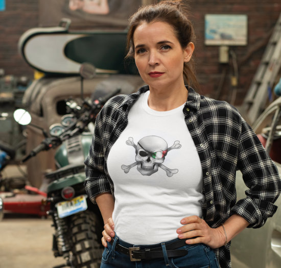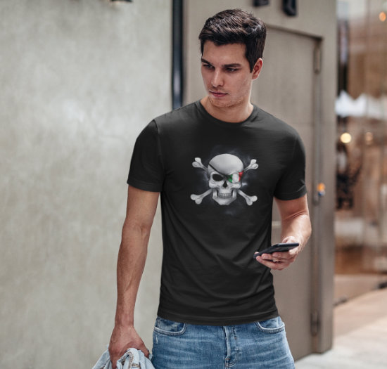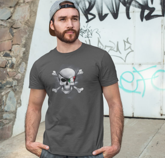 Here’s a variation of my Italian flag design, featured on an eye patch on skull and crossbones (teschio e ossa).