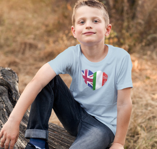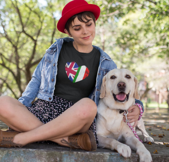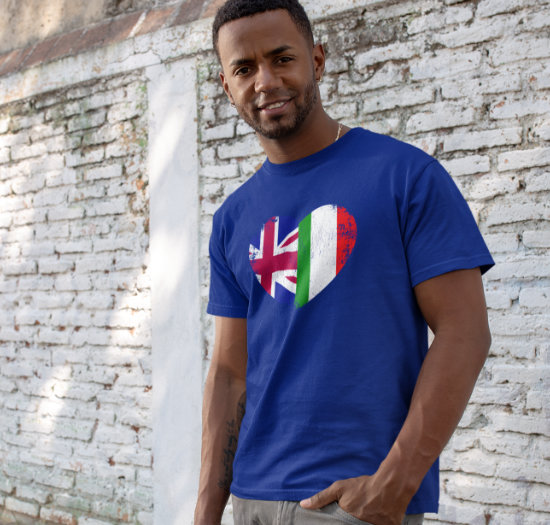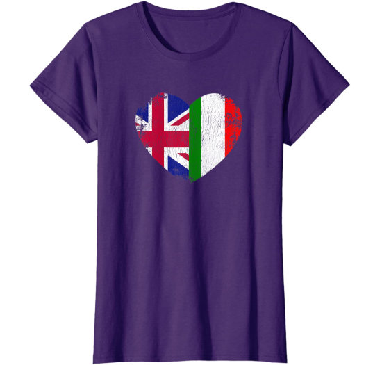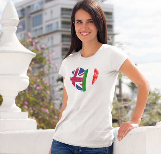 This t-shirt with a British and Italian flag is meant for anyone whose heart belongs to both cultures, Italy and Britain. I originally created this for our daughter, who is half Italian and half English.