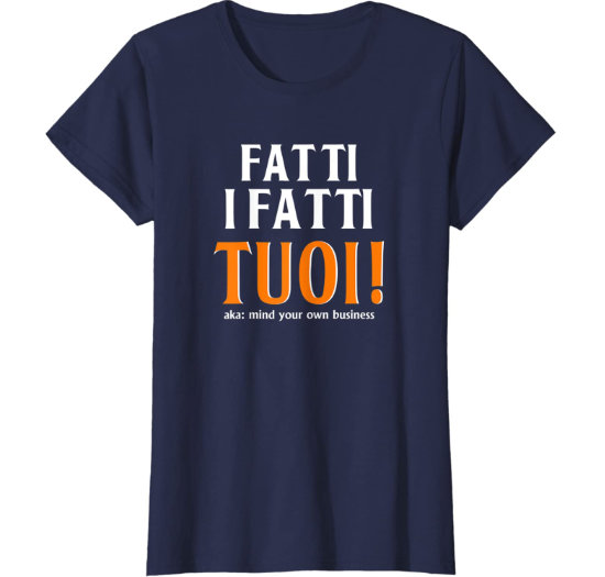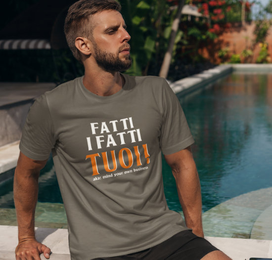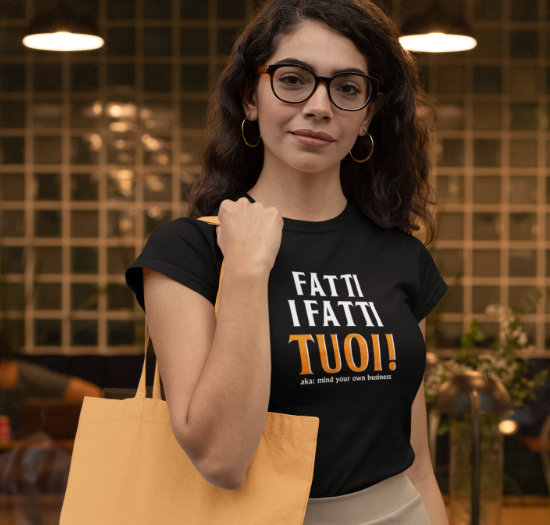 So here comes this design to just put them off: Fatti I fatti tuoi! which means: mind your own business!
