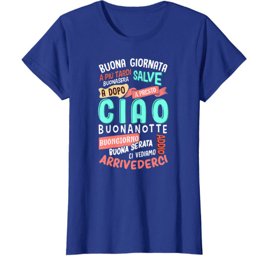If you’ve ever wondered about Italian salutations, this t-shirt will cover them all – or most 😉